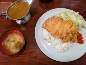とんかつが食べ応え抜群、そして濃厚なビーフカレーが食欲をそそられます!