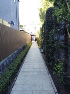 お店の出入り口から敷地の門までの写真です。