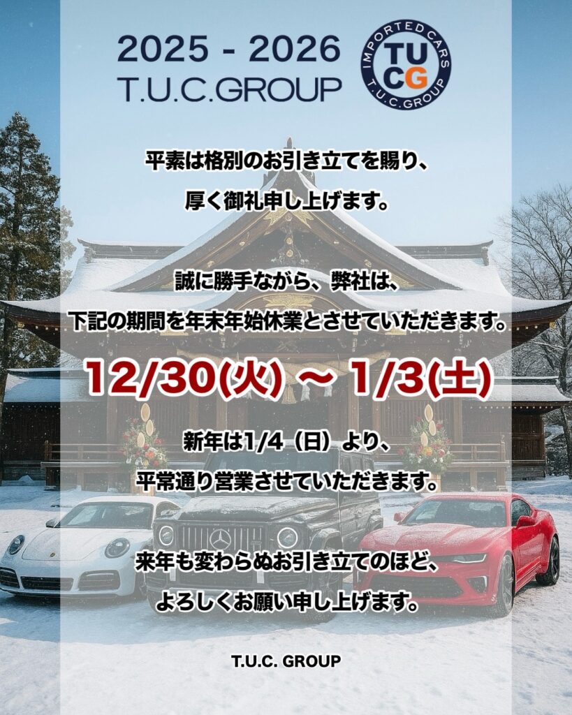 年末年始休業のお知らせです。